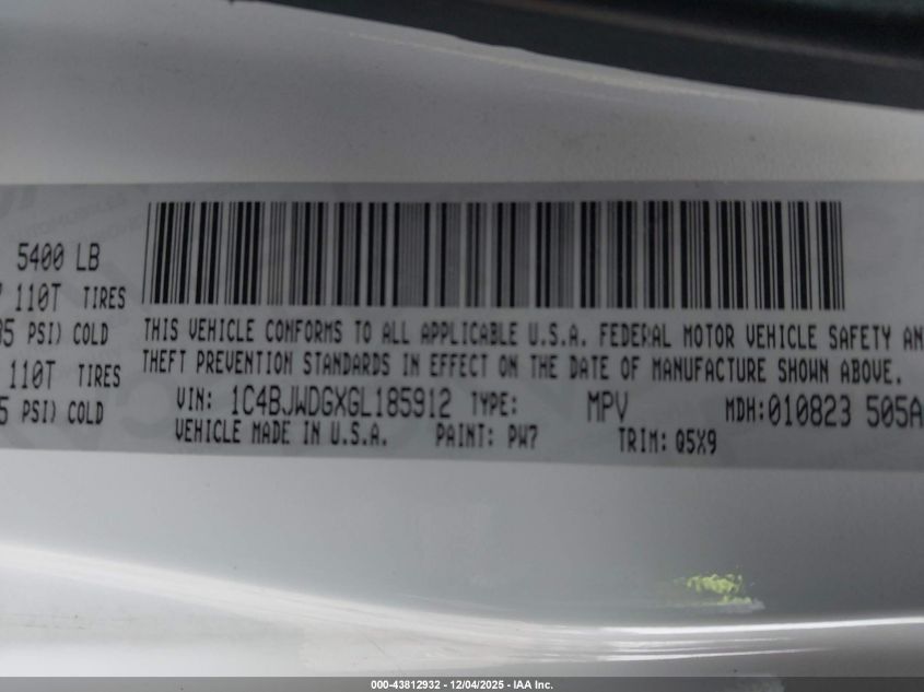 Колір БілийЦиліндри 6Привід Повний привідVIN 1C4BJWDGXGL185912Стан Заводиться та їде (перевірено)Ушкодження Задня ліва AutoRIA