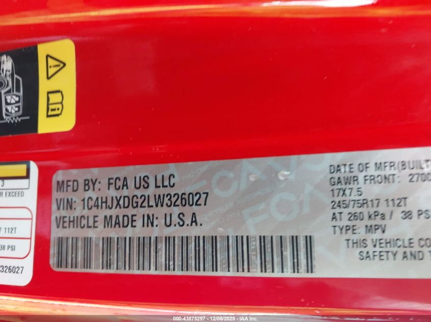Колір ЧервонийЦиліндри 6Привід Повний привідVIN 1C4HJXDG2LW326027Стан Заводиться та їде (перевірено)Ушкодження Передня або задня AutoRIA