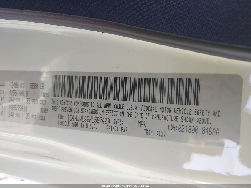 2017 JEEP WRANGLER 2017 року Бензин, 3.6, Повний привід, vin - 1C4HJWEG2HL597400 з США