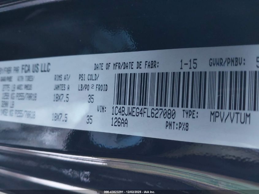2015 JEEP WRANGLER 2015 року Бензин, 3.6, Повний привід, vin - 1C4BJWEG4FL627080 з США