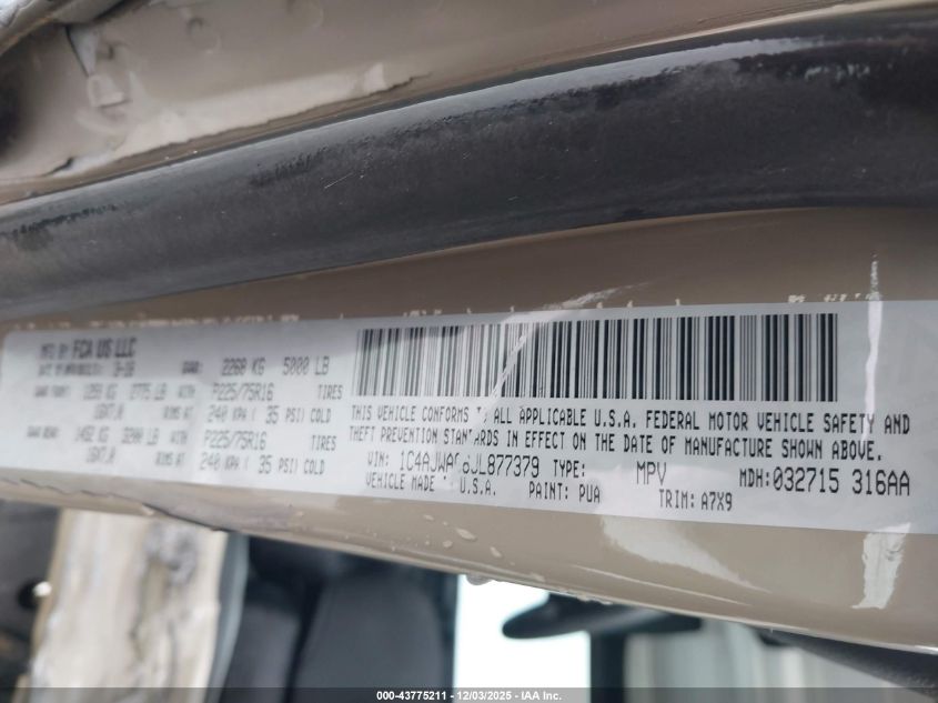 2018 JEEP WRANGLER 2018 року Бензин, 3.6, Повний привід, vin - 1C4AJWAG6JL877379 з США