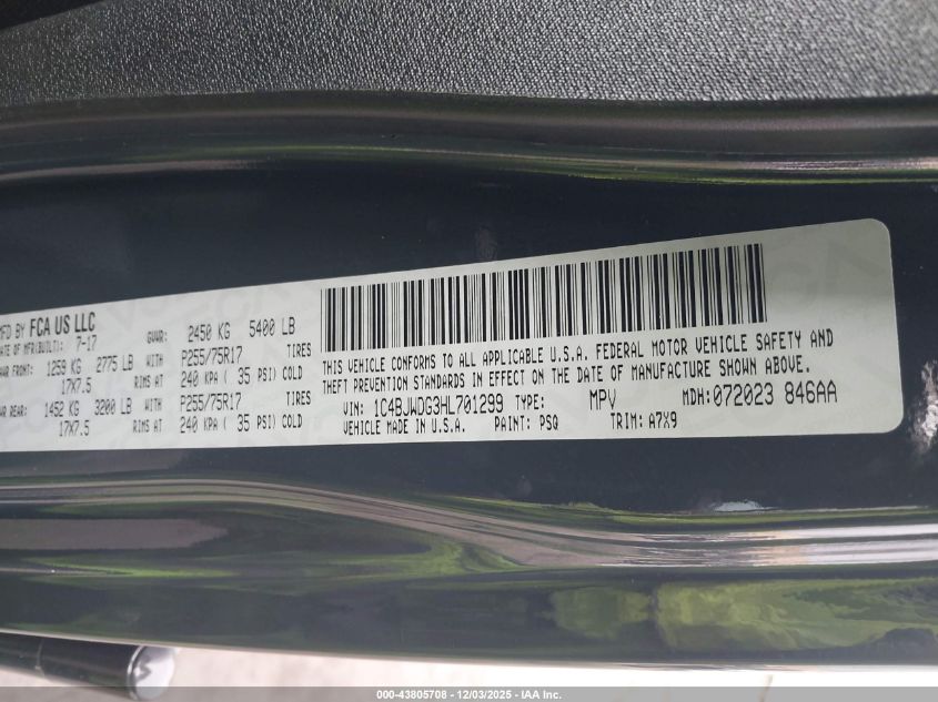 2017 JEEP WRANGLER 2017 року Бензин, 3.6, Повний привід, vin - 1C4BJWDG3HL701299 з США