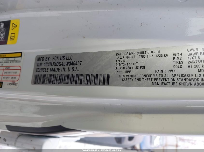 Колір БілийЦиліндри 6Привід Повний привідVIN 1C4HJXDG4LW346487Стан ЗаводитьсяУшкодження Передня ліва AutoRIA