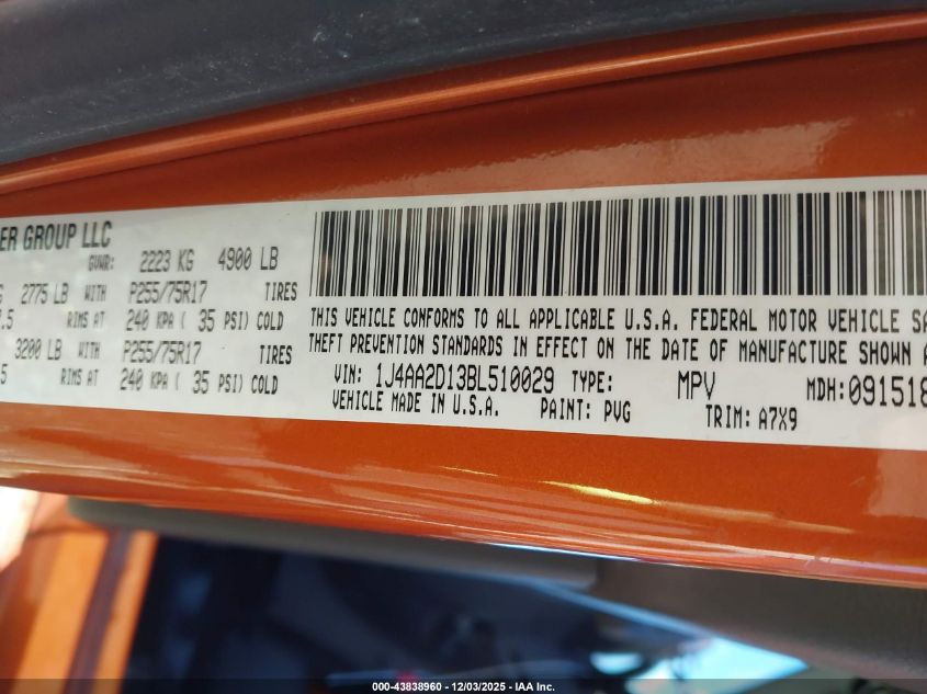Колір АпельсиновийЦиліндри 6Привід Повний привідVIN 1J4AA2D13BL510029Стан Заводиться та їде (перевірено)Ушкодження Звичайний зносДата аукціону 2025-12-09 AutoRIA