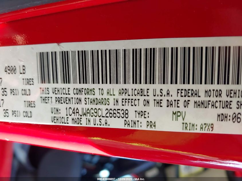 2012 JEEP WRANGLER 2012 року Бензин, 3.6, Повний привід, vin - 1C4AJWAG9CL266538 з США