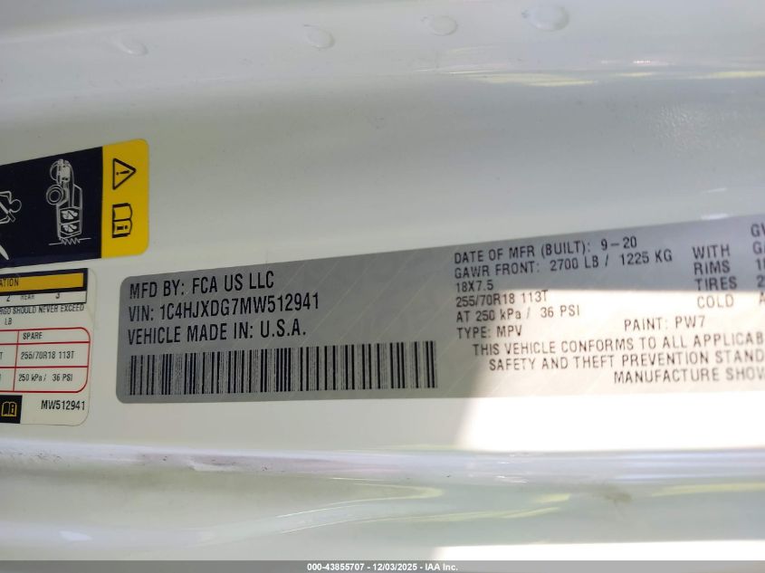 Колір БілийЦиліндри 6Привід Повний привідVIN 1C4HJXDG7MW512941Стан Заводиться та їде (перевірено)Ушкодження Права сторона AutoRIA