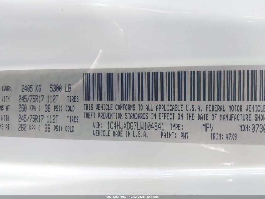 Колір БілийЦиліндри 6Привід Повний привідVIN 1C4HJXDG7LW104941Стан СтаціонарноУшкодження Вандалізм AutoRIA