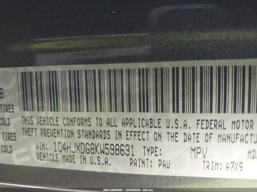 Колір ЧорнийЦиліндри 6Привід Повний привідVIN 1C4HJXDG8KW598631Стан Заводиться та їде (перевірено)Ушкодження Передня права AutoRIA