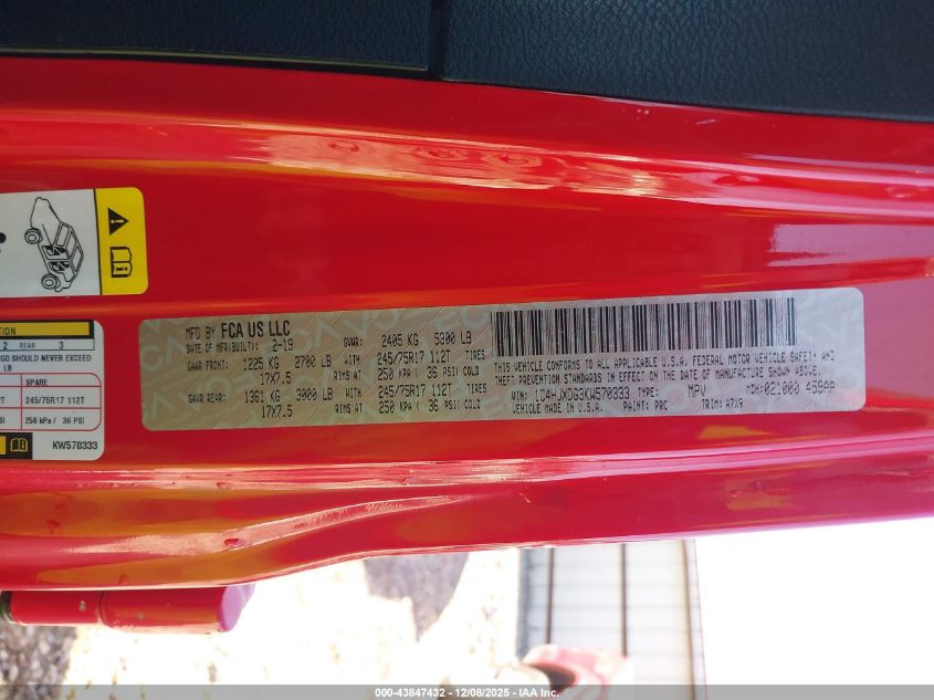 Колір ЧервонийЦиліндри 6Привід Повний привідVIN 1C4HJXDG3KW570333Стан Заводиться та їде (перевірено)Ушкодження Передня або задня AutoRIA