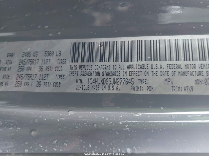 Колір СірийЦиліндри 6Привід Повний привідVIN 1C4HJXDG5JW277645Стан СтаціонарноУшкодження Передня ліва AutoRIA