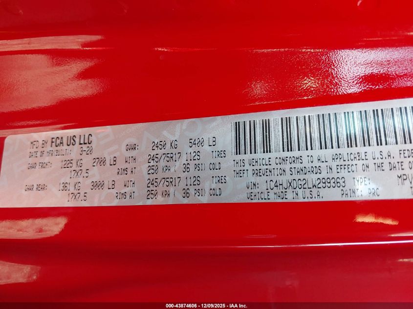 Колір ЧервонийЦиліндри 6Привід Повний привідVIN 1C4HJXDG2LW299363Стан Заводиться та їде (перевірено)Ушкодження Права сторона AutoRIA