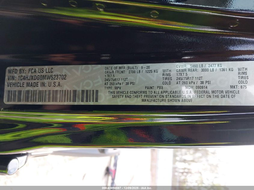 2021 JEEP WRANGLER 2021 року Бензин, 3.6, Повний привід, vin - 1C4HJXDG0MW523702 з США