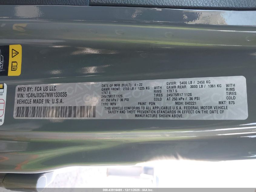 2022 JEEP WRANGLER 2022 року Бензин, 3.6, Повний привід, vin - 1C4HJXDG7NW133035 з США