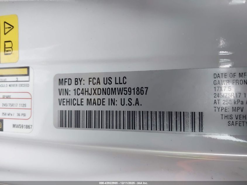 Колір Циліндри 4Привід Повний привідVIN 1C4HJXDN0MW591867Стан НевідомоУшкодження Ліва сторона AutoRIA