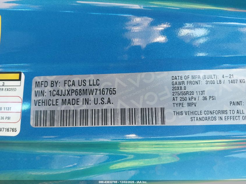 2021 JEEP WRANGLER 2021 року Гібрид, 2.0, Повний привід, vin - 1C4JJXP68MW716765 з США