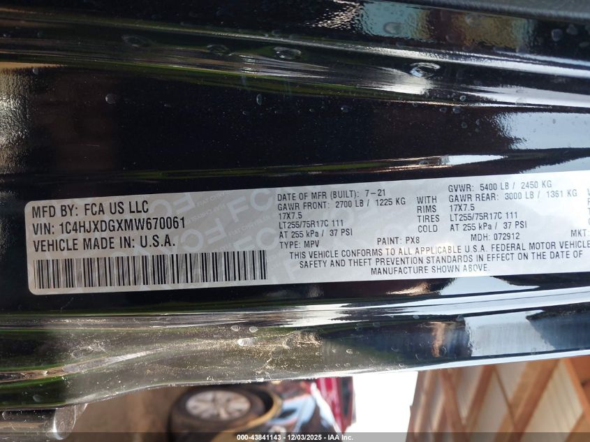 2021 JEEP WRANGLER 2021 року Бензин, 3.6, Повний привід, vin - 1C4HJXDGXMW670061 з США