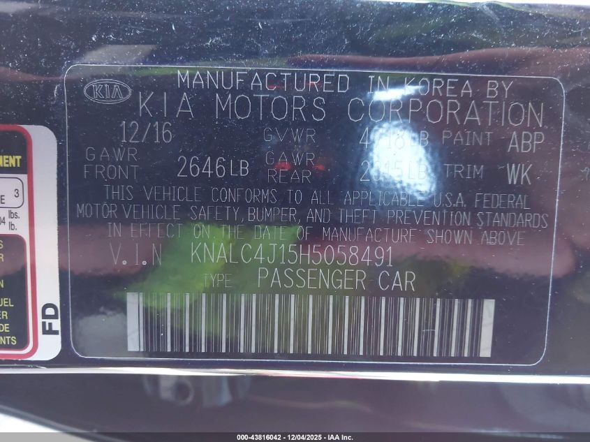 2017 KIA CADENZA 2017 року Бензин, 3.3, Передній привід, vin - KNALC4J15H5058491 з США