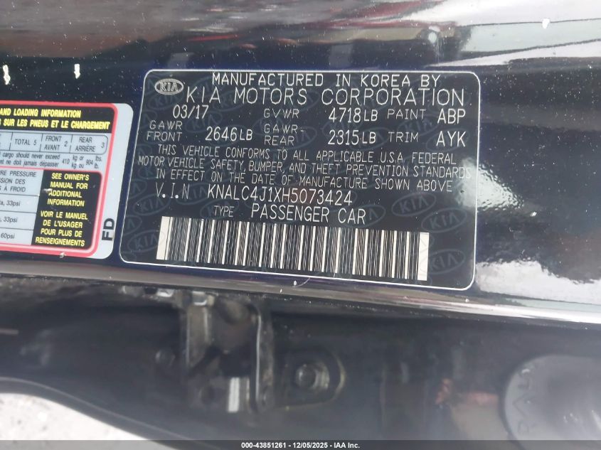 2017 KIA CADENZA 2017 року Бензин, 3.3, Передній привід, vin - KNALC4J1XH5073424 з США