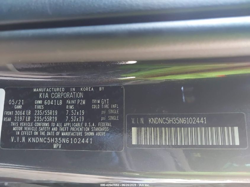 2022 KIA CARNIVAL 2022 року Бензин, 3.5, Передній привід, vin - KNDNC5H35N6102441 з США