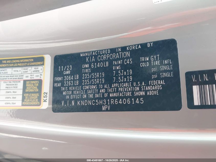 2024 KIA CARNIVAL 2024 року Бензин, 3.5, Передній привід, vin - KNDNC5H31R6406145 з США
