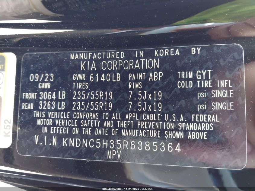 2024 KIA CARNIVAL 2024 року Бензин, 3.5, Передній привід, vin - KNDNC5H35R6385364 з США