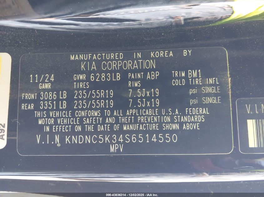 2025 KIA CARNIVAL 2025 року Бензин, 3.5, Передній привід, vin - KNDNC5K34S6514550 з США