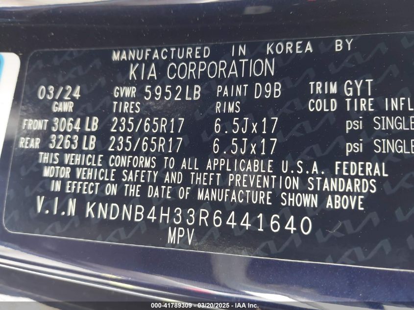 Колір СинійЦиліндри 6Привід Передній привідVIN KNDNB4H33R6441640Стан СтаціонарноУшкодження Передня або задня AutoRIA