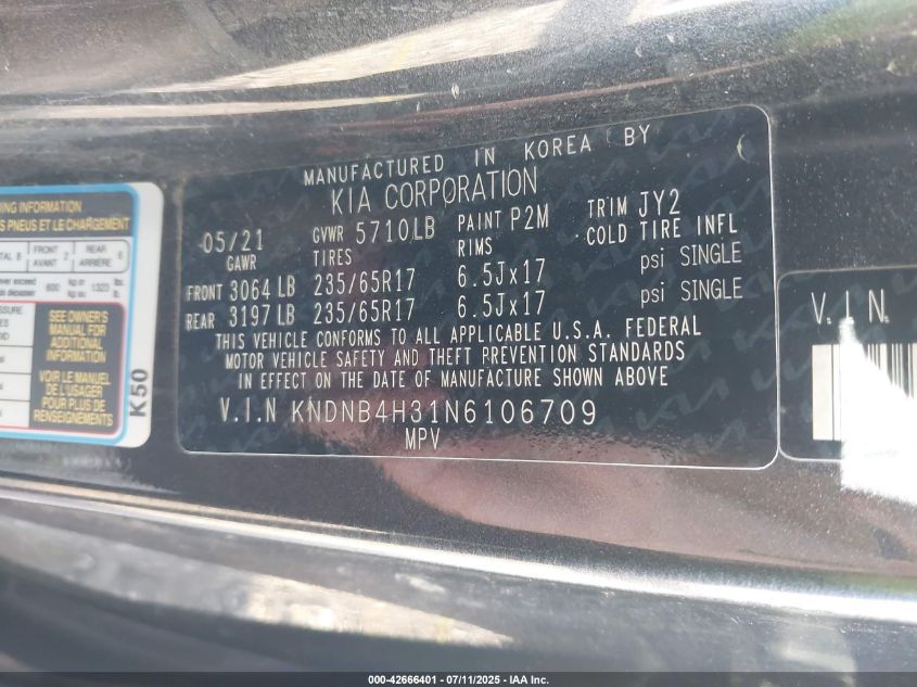 2022 KIA CARNIVAL 2022 року Бензин, 3.5, Передній привід, vin - KNDNB4H31N6106709 з США