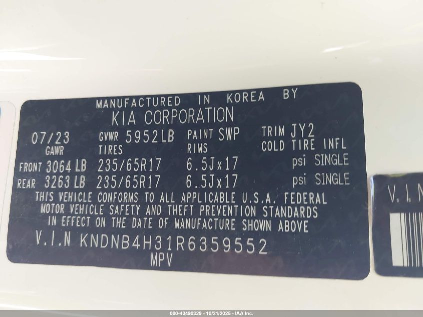 2024 KIA CARNIVAL 2024 року Бензин, 3.5, Передній привід, vin - KNDNB4H31R6359552 з США