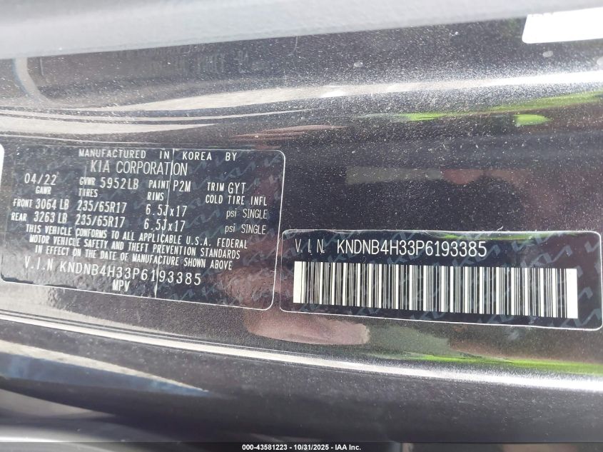 2023 KIA CARNIVAL 2023 року Бензин, 3.5, Передній привід, vin - KNDNB4H33P6193385 з США