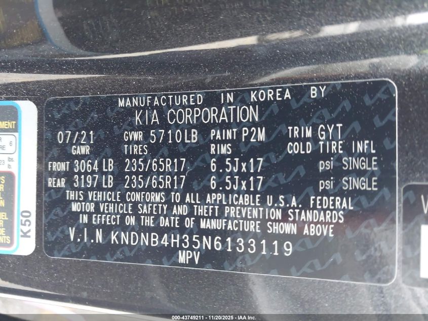 2022 KIA CARNIVAL LX