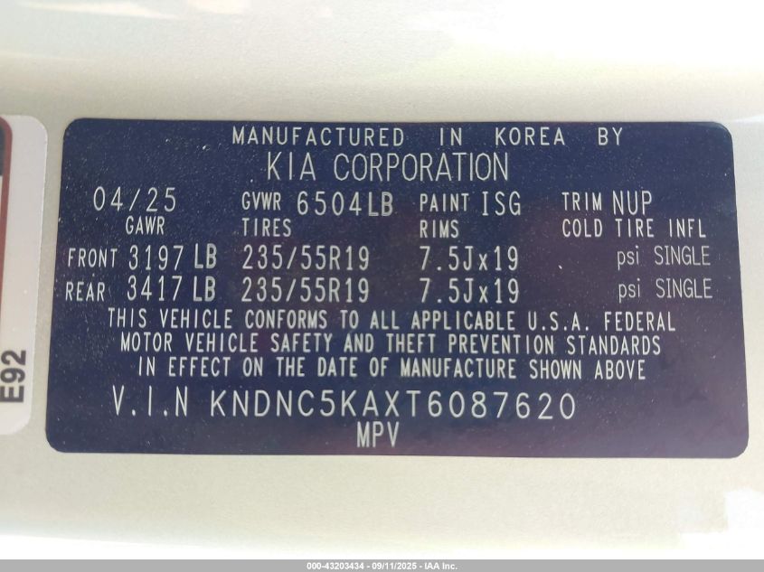 2026 KIA CARNIVAL 2026 року Гібрид, 1.6, Передній привід, vin - KNDNC5KAXT6087620 з США