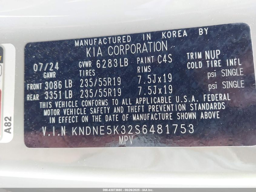2025 KIA CARNIVAL 2025 року Бензин, 3.5, Передній привід, vin - KNDNE5K32S6481753 з США