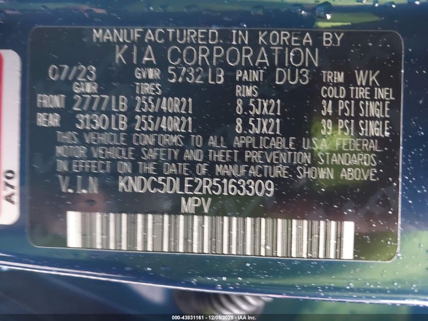 2024 KIA EV6 2024 року Електричний, U, Повний привід, vin - KNDC5DLE2R5163309 з США