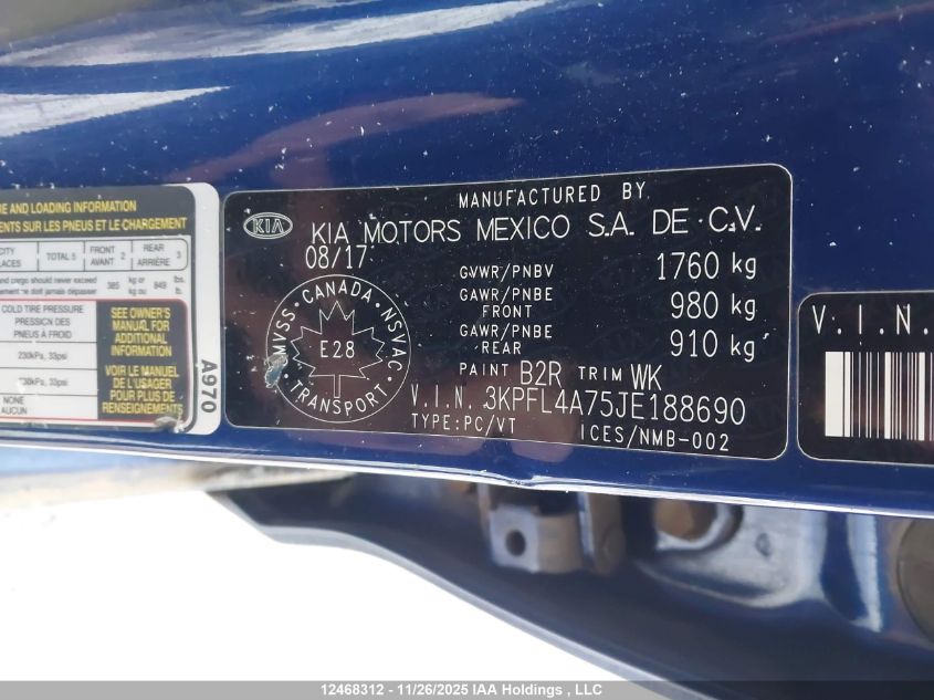2018 KIA FORTE 2018 року Бензин, , Передній привід, vin - 3KPFL4A75JE188690 з США
