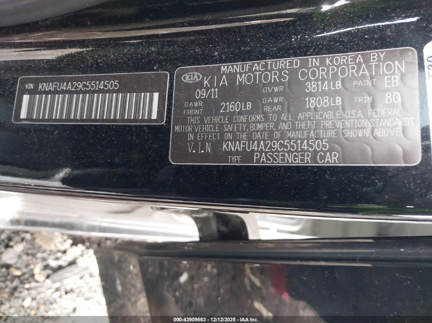 2012 KIA FORTE 2012 року Бензин, 2.0, Передній привід, vin - KNAFU4A29C5514505 з США