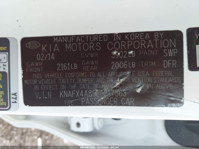 2014 KIA FORTE 2014 року Бензин, 2.0, Передній привід, vin - KNAFX4A89E5217863 з США