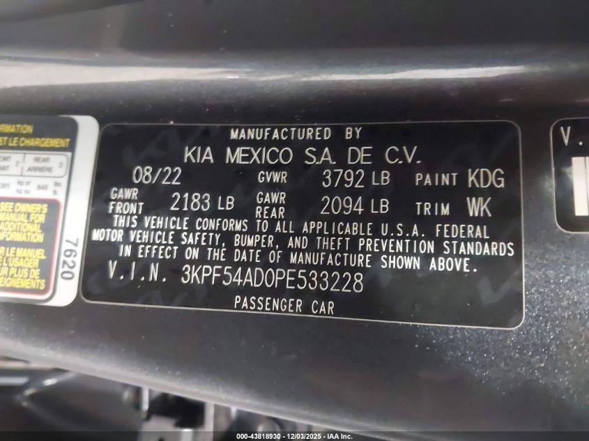 2023 KIA FORTE 2023 року Бензин, 2.0, Передній привід, vin - 3KPF54AD0PE533228 з США