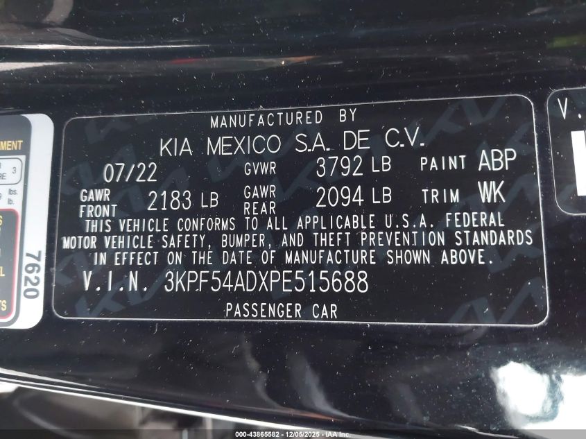 2023 KIA FORTE 2023 року Бензин, 2.0, Передній привід, vin - 3KPF54ADXPE515688 з США