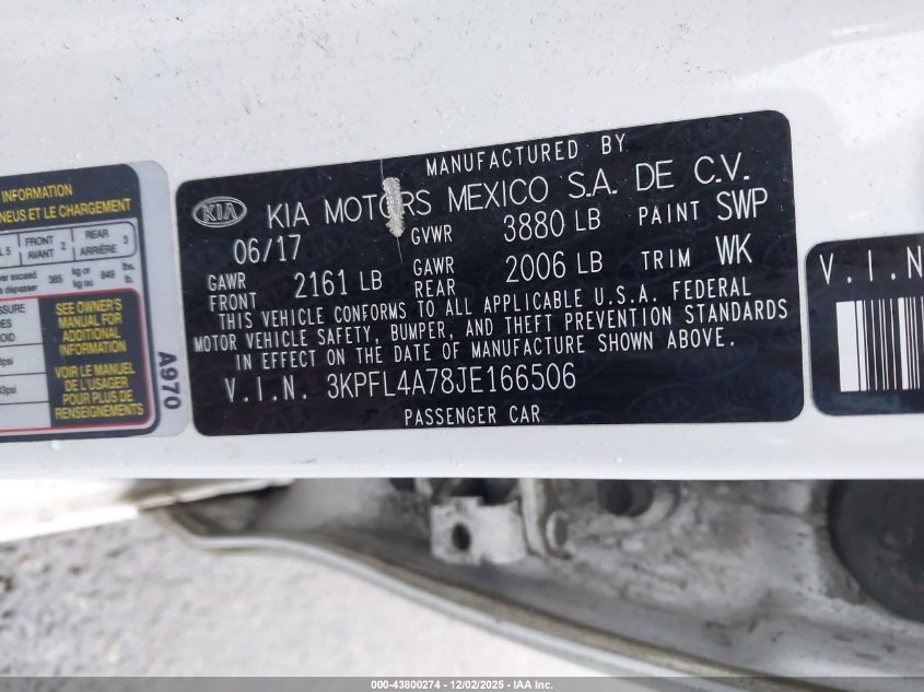 2018 KIA FORTE 2018 року Бензин, 2.0, Передній привід, vin - 3KPFL4A78JE166506 з США