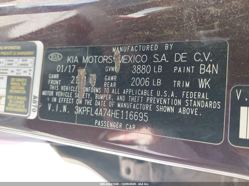2017 KIA FORTE 2017 року Бензин, 2.0, Передній привід, vin - 3KPFL4A74HE116695 з США