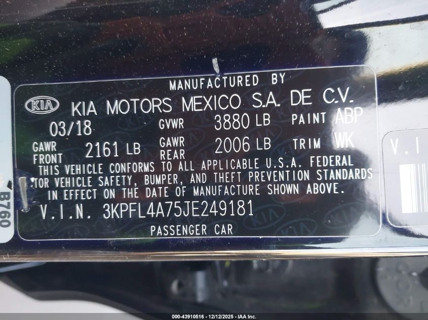 2018 KIA FORTE 2018 року Бензин, 2.0, Передній привід, vin - 3KPFL4A75JE249181 з США