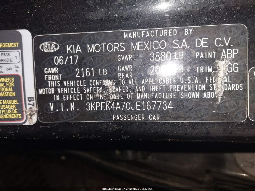 2018 KIA FORTE 2018 року Бензин, 2.0, Передній привід, vin - 3KPFK4A70JE167734 з США