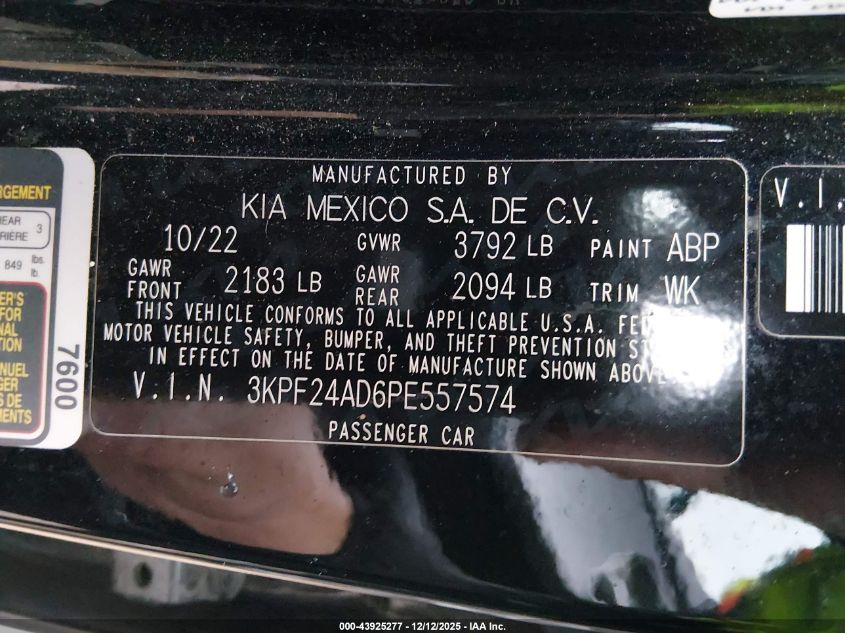2023 KIA FORTE 2023 року Бензин, 2.0, Передній привід, vin - 3KPF24AD6PE557574 з США
