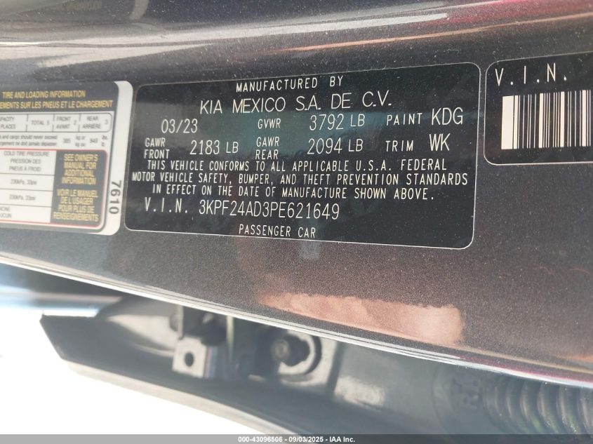 2023 KIA FORTE 2023 року Бензин, 2.0, Передній привід, vin - 3KPF24AD3PE621649 з США