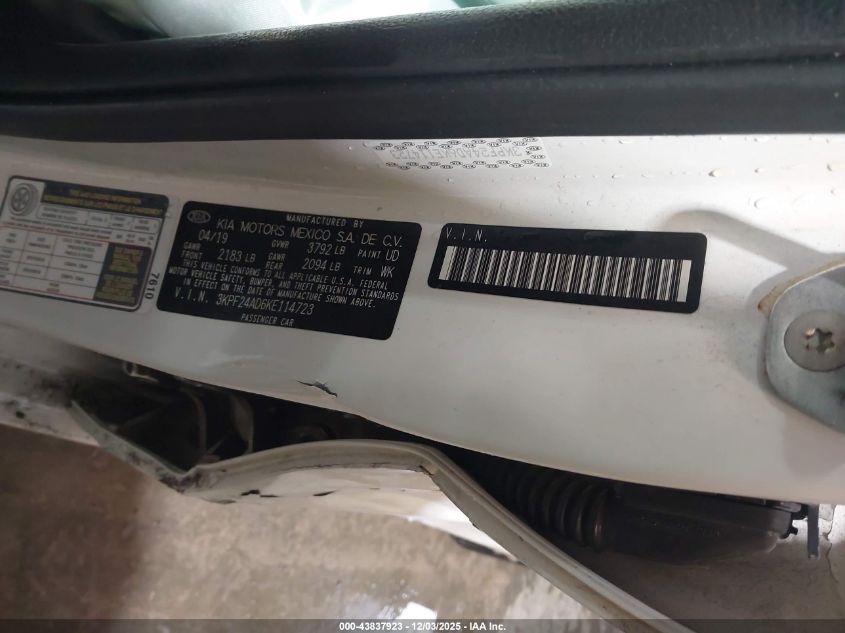 2019 KIA FORTE 2019 року Бензин, 2.0, Передній привід, vin - 3KPF24AD6KE114723 з США