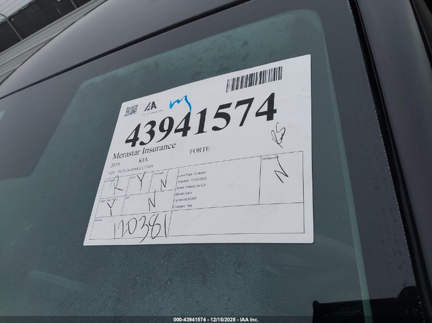 2019 KIA FORTE 2019 року Бензин, 2.0, Передній привід, vin - 3KPF24AD6KE137404 з США