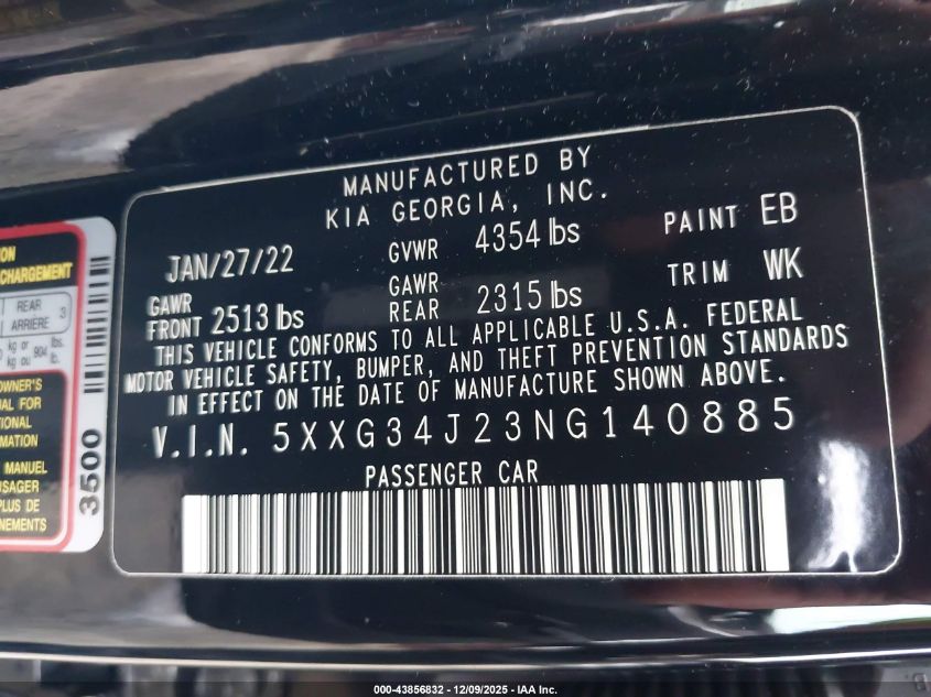 2022 KIA K5 2022 року Бензин, 1.6, Передній привід, vin - 5XXG34J23NG140885 з США