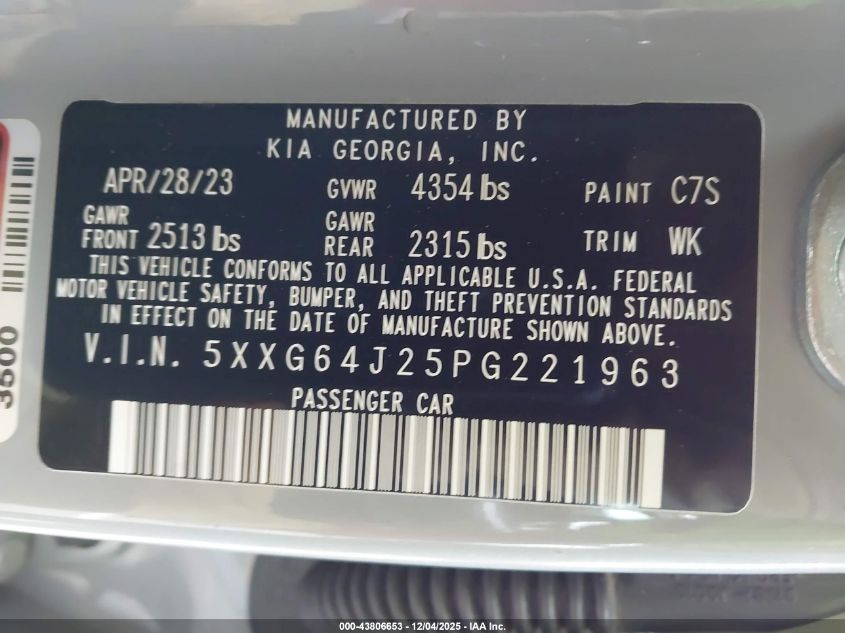 2023 KIA K5 2023 року Бензин, 1.6, Передній привід, vin - 5XXG64J25PG221963 з США