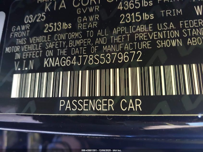 2025 KIA K5 2025 року Бензин, 2.5, Передній привід, vin - KNAG64J78S5379672 з США